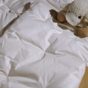 Dieses NaturWollBett besteht aussen aus naturbelassenen Baumwollstoff.